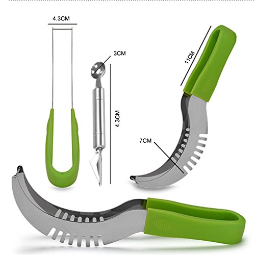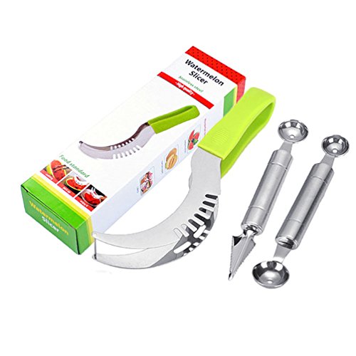 Seluna Watermelon Slicer Cutter Corer & Server Set - Multipurpose All In One Stainless Steel Knife - Melon Baller Scoop & Fruit Slicer - Comfortable Handle Corer Tongs & Dicer Spoon & Corer