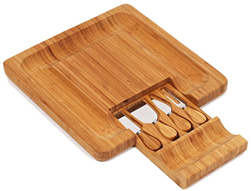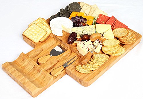 Studio : Kenley Publisher : Kenley Product Description Serve your guests with style The Kenley Bamboo Cheese Board is designed to be a decorative yet practical way to serve cheese and other delicious food. The beautiful grain of the 100% natural organic bamboo wood looks great in any setting and the integrated drawer keeps your cheese knife close at hand yet out of the way. The set includes 4 stainless steel tools with matching bamboo handles for serving cheese of all kinds: a hard cheese knife, a soft cheese knife, a spatula knife and a cheese fork. What a marvellous gift!