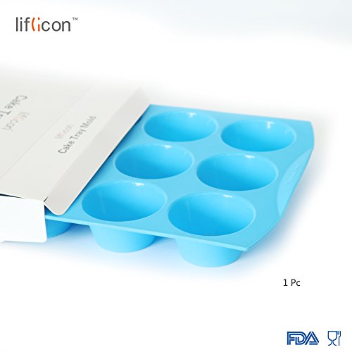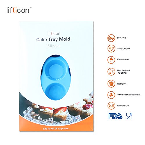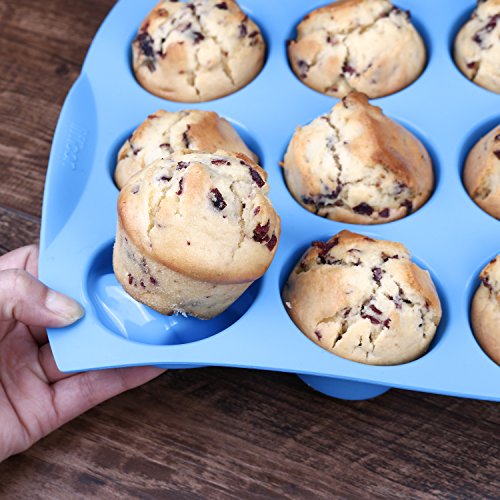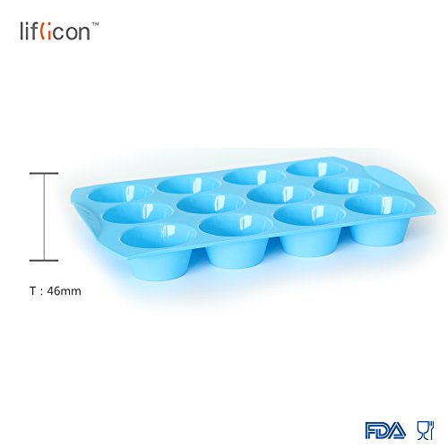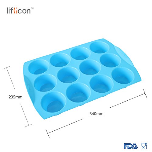 Liflicon Silicone Baking Cake Tray Tin Cupcake Mold 12-Cup Cavities Simple To Clean-Blue