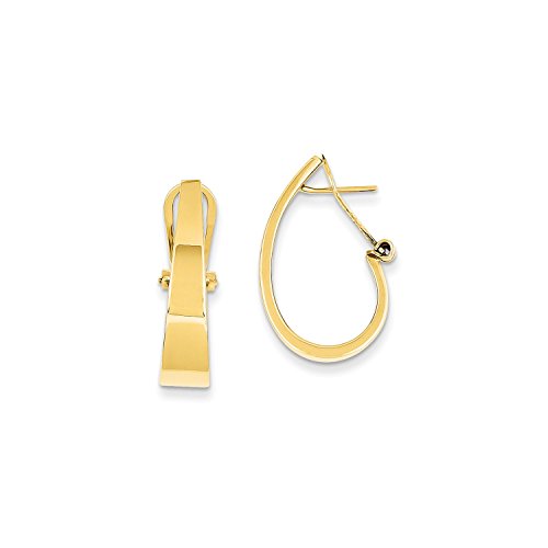 -. Feature : SPECIFICATIONS: Jewelry Type: Earrings, Earring Type: Hoop, Material: P.R.Imary: Gold, Material: P.R.Imary - Color: Yellow, Material: P.R.Imary - Purity: 14K, Length of Item: 22mm, Width of Item: 6mm, Sold By Unit: Pair, Earring Closure: Omega Clip Back / ATTRIBUTES: Polished, 14k Yellow gold, Hollow, Omega back / Roy Rose Jewelry Style# RRXY608 ~ Solid 14k Yellow Gold Gold / 100% Satisfaction Guaranteed - 30 Day Return - Gift Box included / Roy Rose Jewelry - selling fine jewelry since 1980 and online since 1999