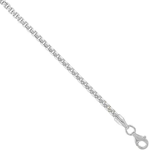 -. Title : Sterling Silver ROUND BOX Chain Necklace 2.5mm Medium Weight Nickel Free Italy, sizes 16 - 30 inch