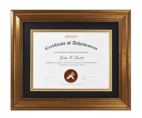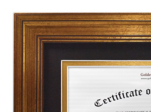 Golden State Art, 8x10 Frame for 6x8 Diploma / Certificate, Dark Gold Color. Includes Black Over Gold Double Mat, Real Glass & Table-top Display