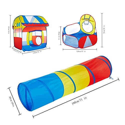 - 3.The playhouse tent tunnel with ball pit inside is spacious enough for 2-3 little kids to play, After all no one wants to play alone,Keep your children and their friends active and occupied with Endless Adventures