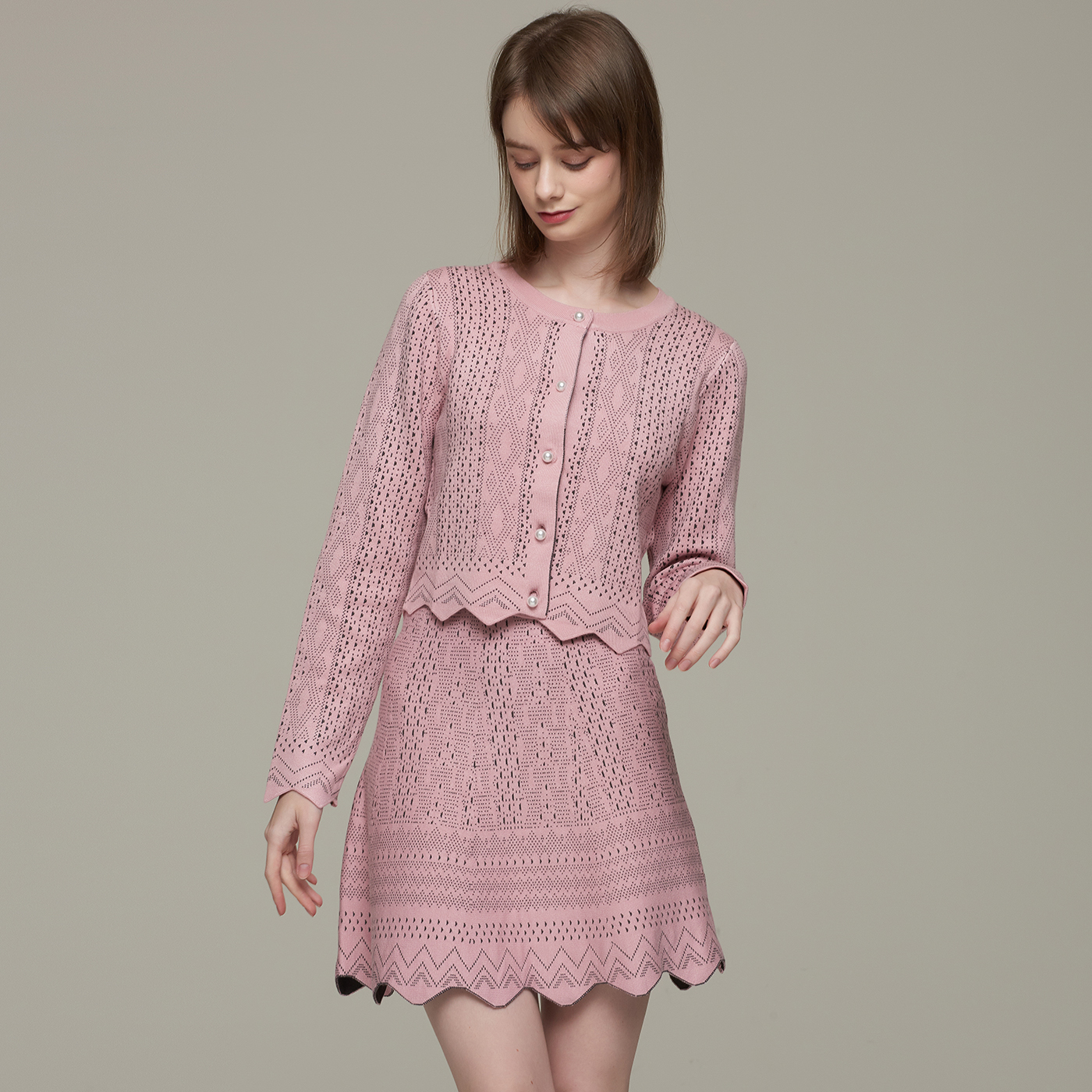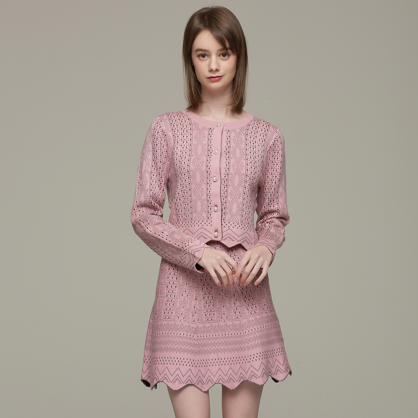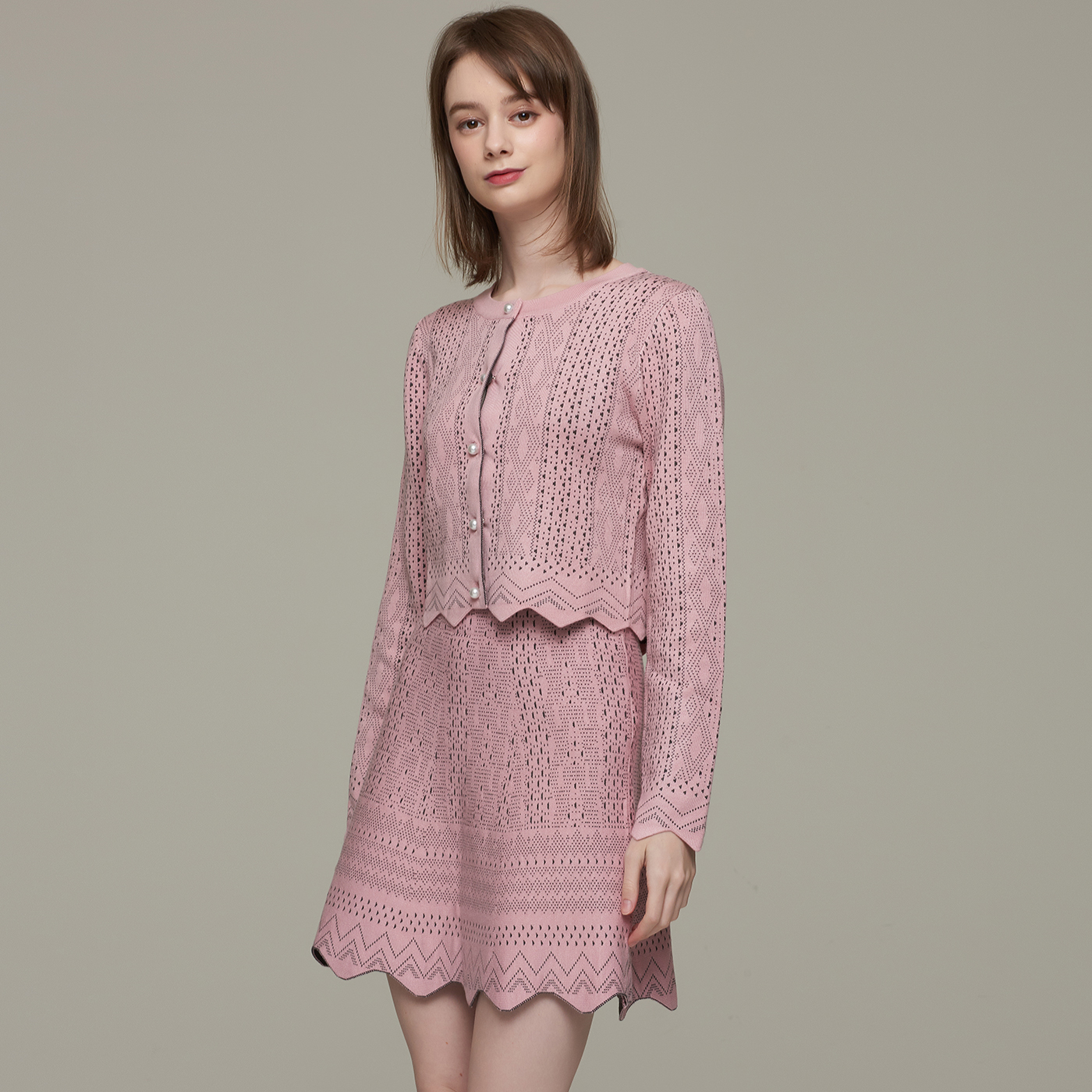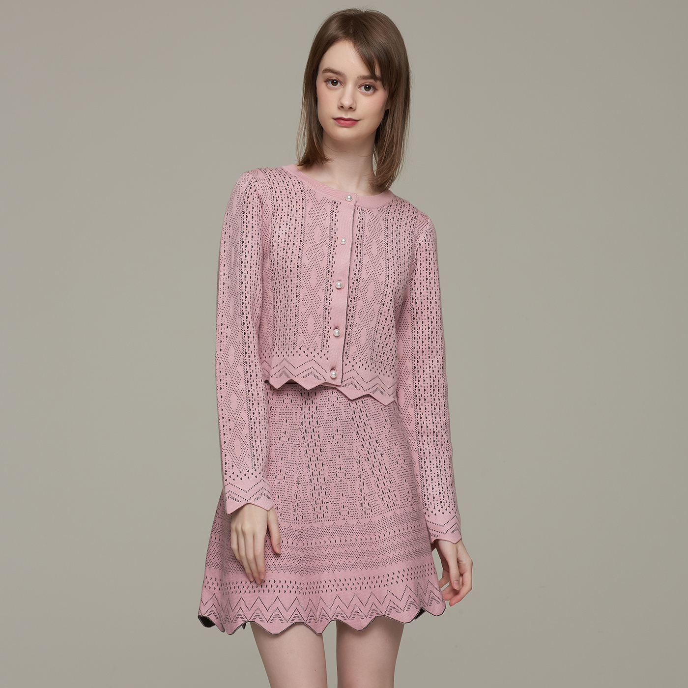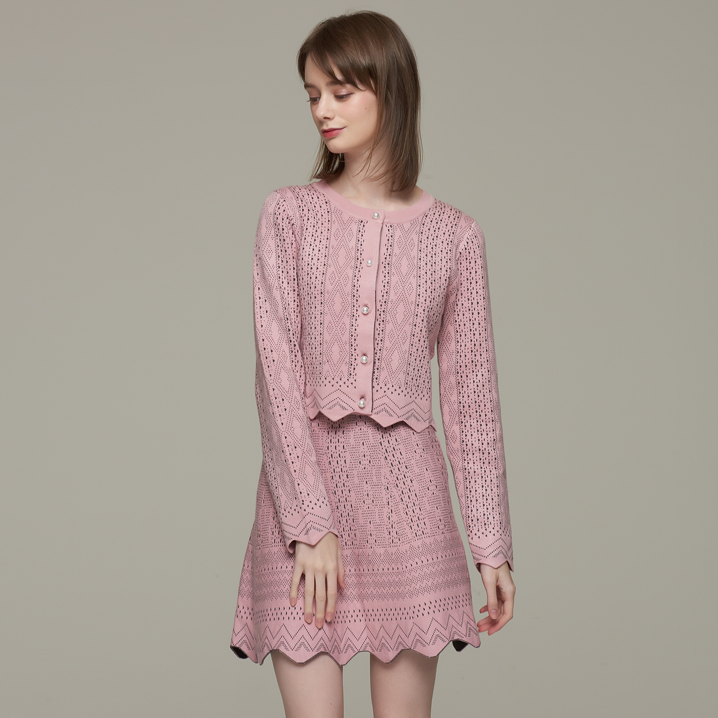 지오메트릭 패턴의 고급스런 크롭 가디건으로 컬러감과 디자인이 사랑스럽습니다.