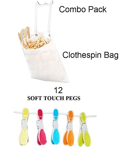 12 Pack Soft Touch Plastic Clothespins with Hanging Mesh Clothespin Bag