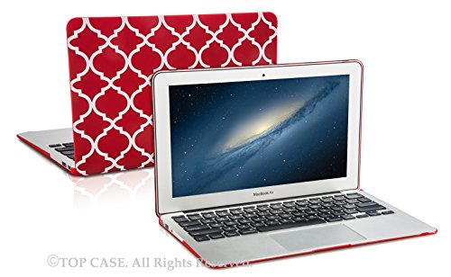 TopCase Quatrefoil / Moroccan Trellis Red Ultra Slim Light Weight Rubberized Hard Case Cover for Macbook Air 11" Model: A1370 and A1465