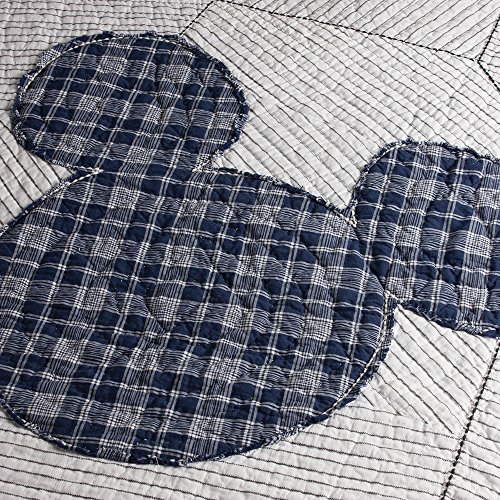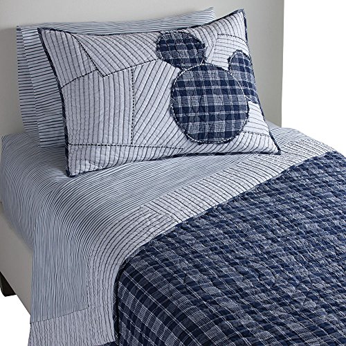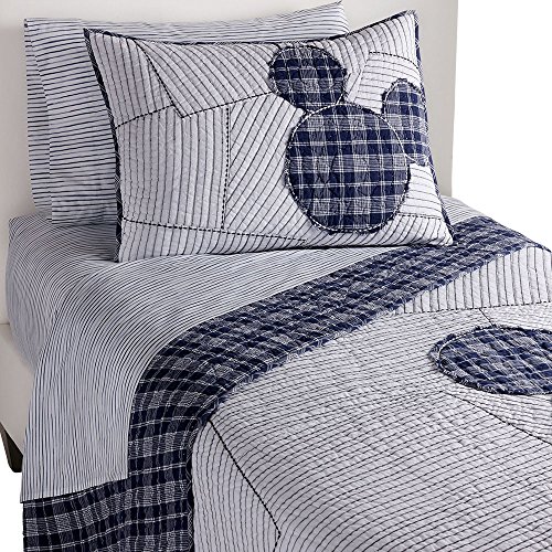 Studio : Ethan Allen | Disney Publisher : Ethan Allen | Disney Product Description It's a new-fashioned vintage look! It showcases needlework-and inimitable Disney style. Available in twin and full/queen sizes, the 100% cotton quilt (with cotton fill) features a pieced, embroidered top in a vintage ticking stripe, with a Midnight (blue) plaid Mickey Mouse applique and border; reverses to the same plaid. All Ethan Allen | Disney bedcoverings are designed to coordinate, so you can start with Ticking Stripe Mickey Mouse, then mix and match to your heart's content! 0