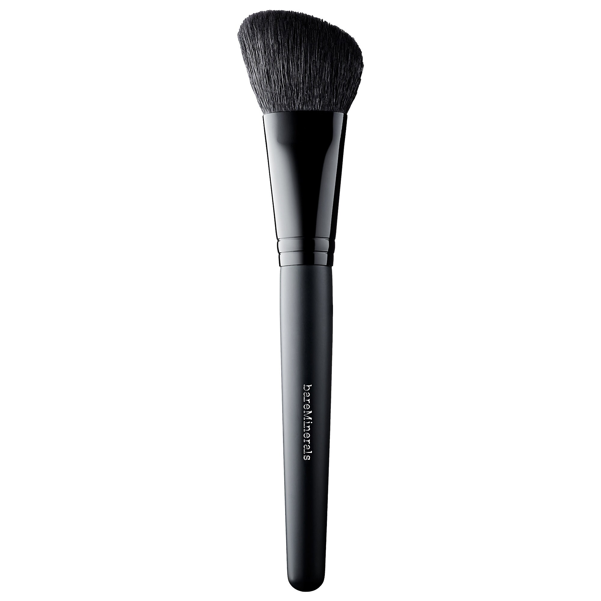A brush designed with natural fibers for seamless application and blending of blushes, bronzers, and face makeup.