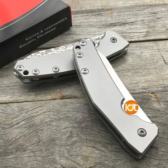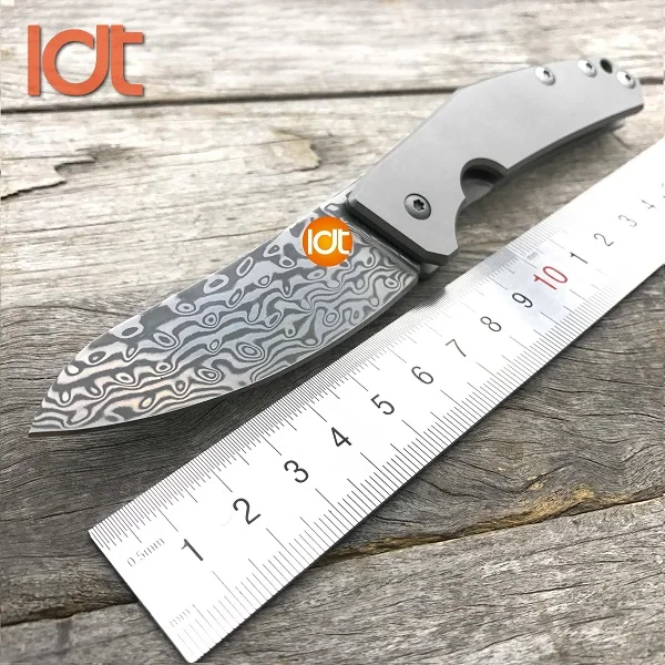 | [해외] LDT C211 접는 칼 D2 다마스커스 블레이드 티타늄 캠핑 포켓 나이프 전술 생존 사냥 칼 EDC 도구 |