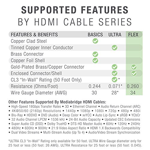 -. Title : Mediabridge FLEX Series HDMI Cable (3 Feet) - High-Speed Supports 4K, Ethernet, 3D and Audio Return [Newest Standard] - (Part# MPC-HDMI34-3 )