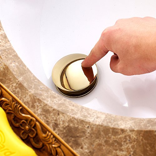 Hiendure Brass Bathroom Vessel Sink Pop Up Drain Stopper without Overflow, Gold