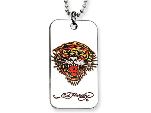 The alluring Ed Hardy Roaring Tiger Dog Tag Painted Necklace, crafted in Stainless Steel . This product measures 24.00 Inches long.
