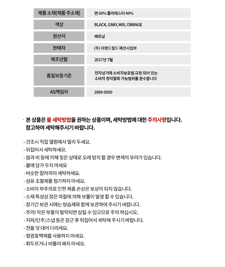 상품 실측 사이즈
