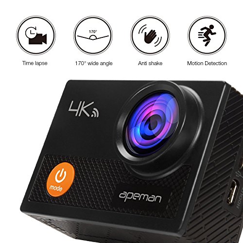 【4K Ultra HD Resolution】 APEMAN Professional 4K Ultra HD Action Camera records video in 4K/25fps & 2.7K 30fps which is quadruple the distinguishability of previous HD cameras. Help you capture and share your world in a amazing resolution