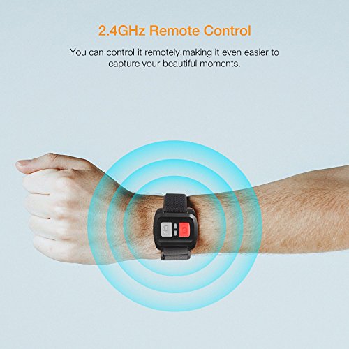 【Wireless Wrist Remote Control】 Featuring a wrist 2.4GHz wireless RF Remote Control, you can capture your world. Recording, taking photos or framing shots are more convenient via the remote control. Don't have to look at the Camera all the time and handle it step by step