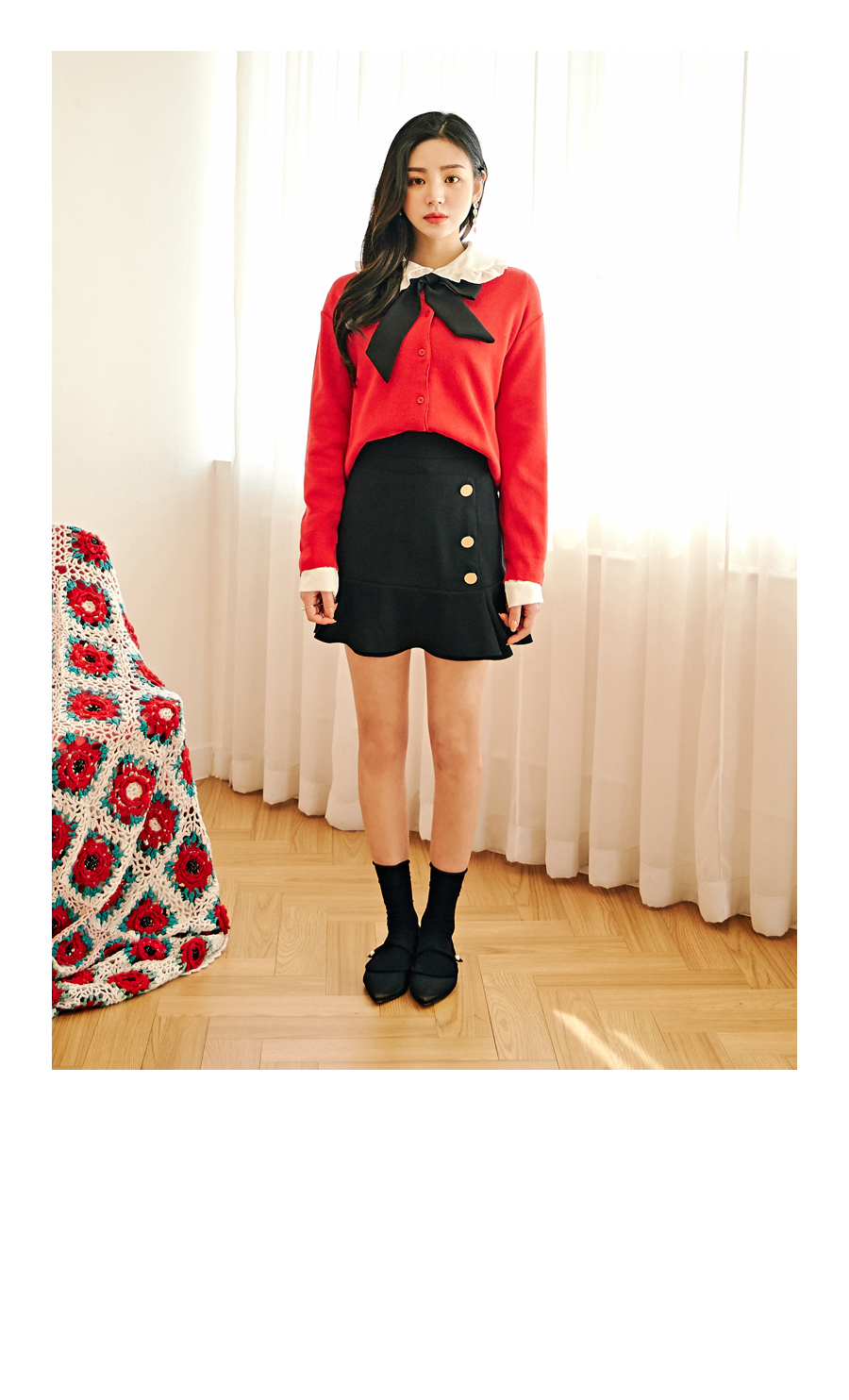 깔끔한 라운드 넥라인과 중앙에 버튼디테일로