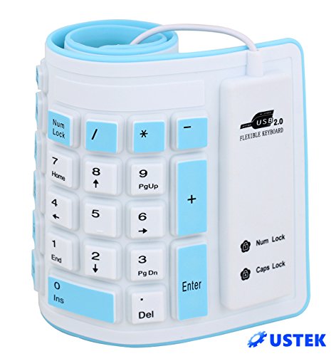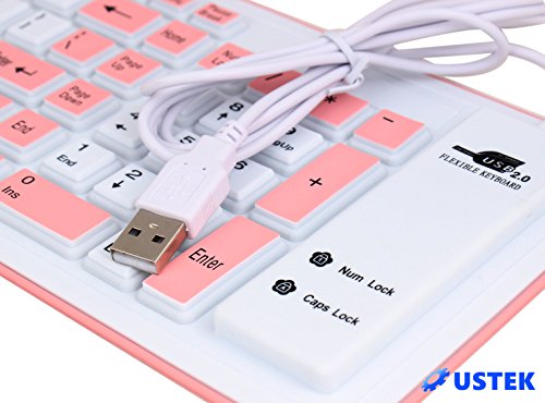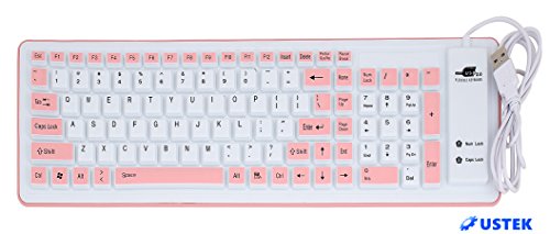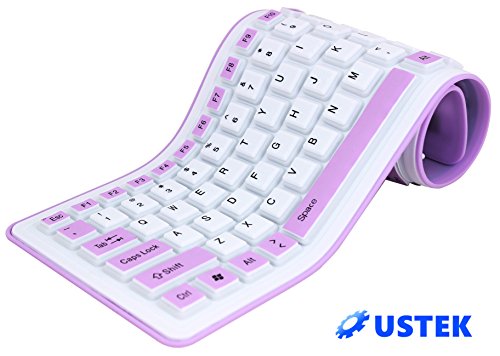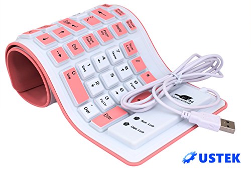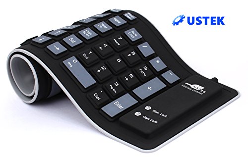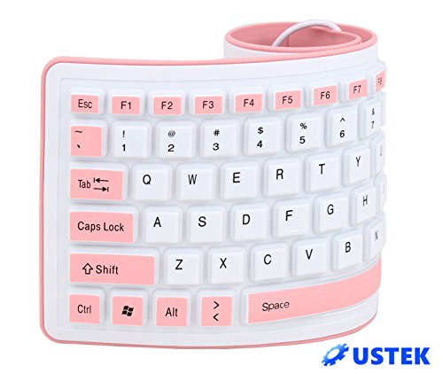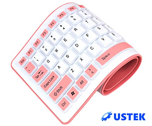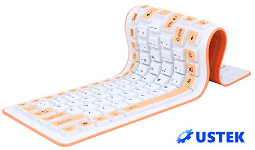USTEK® Flexible Keyboard Soft Foldable Silent USB 2.0 Wired Waterproof Dustproof Silicone Gel Keyboard (103 Keys) Can be Rolled up Applicable for Windows7 PC Laptop Notebook Desktop Computer