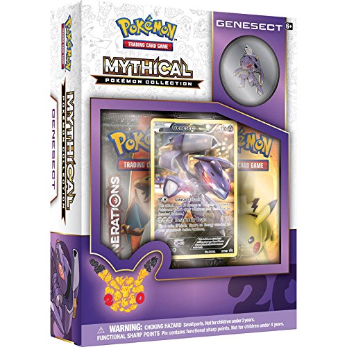 -. Binding : Toy -. Brand : Pokémon -. Department : unisex-child -. EAN : 0820650800955 -. Edition : General -. Feature : The Pokémon TCG: Mythical Pokémon collection-genesect includes a never-before-seen foil promo card featuring genesect / Includes a genesect collector's pin / Comes with 2 booster packs from the special Pokémon TCG: Generations expansion! / Also includes a code card for the Pokémon trading card game online -. Genre : Collectible Cards -. IsAdultProduct : 0 -. ItemPartNumber : Pokemon Mythical Collection - Genesect -. Label : R&M -. LegalDisclaimer : New, Still sealed! Ships out to you within 1 day over the weekdays, 2 days over the weekend. -. Manufacturer : R&M -. Model : 290-80095 -. MPN : 290-80095 -. PackageQuantity : 1 -. PartNumber : 290-80095 -. ProductGroup : Toy -. ProductTypeName : TOYS_AND_GAMES -. Publisher : R&M -. ReleaseDate : 2016-11-01 -. Studio : R&M -. Title : TCG Mythical Collection Genesect Card Game -. UPC : 820650800955 -. Warranty : No Warranty