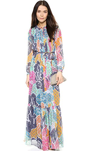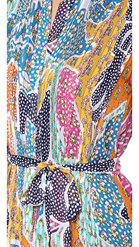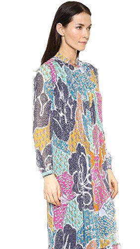 A blend of retro-inspired prints adds vivid color to this silk Diane von Furstenberg dress. Banded high neckline. Dense pleats frame the concealed-button placket. Sheer long sleeves and single-button cuffs. Self-belt. Double-layered.Feature