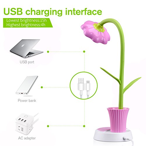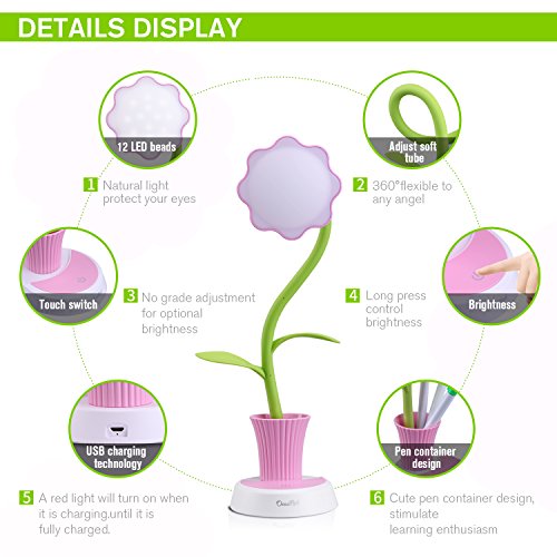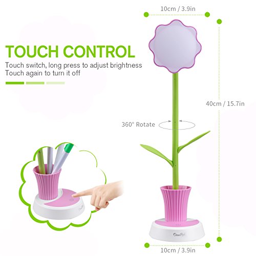 Children Desk Lamp, OCOOPA Kids Lamp,Cute Desk Lamp Touch Control Dimming Light Flexible USB Rechargeable Desk Lamp,Children Studying Lamp with Pencil Holder(Pink),Gift for Kids