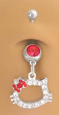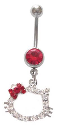 Hello Kitty Red Bow Cz Head dangle Belly navel Ring piercing bar body jewelry