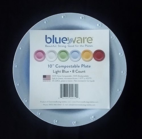 Blueware 10" Compostable Plate, Light Blue, 8-Pack