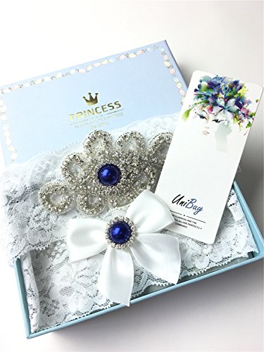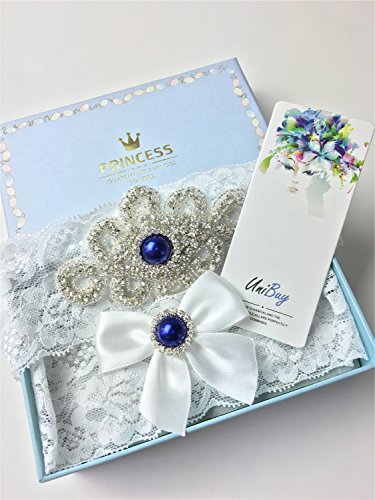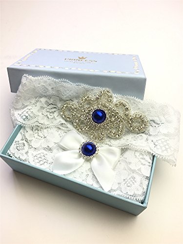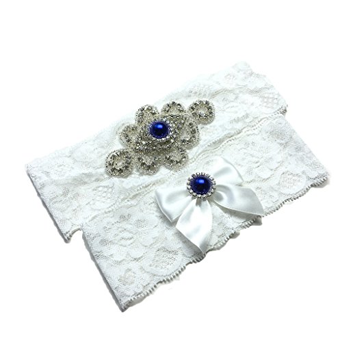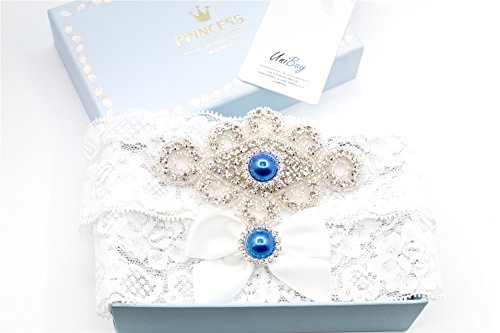 Unibuy Wedding Lace Garter Set With Blink Rhinestone Add Navy Blue Pearl(Pretty Box Something blue)