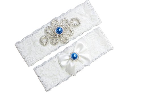 UNIBUY WEDDING LACE GARTER SET WITH BLINK RHINESTONE ADD NAVY BLUE PEARL(PRETTY BOX SOMETHING BLUE)