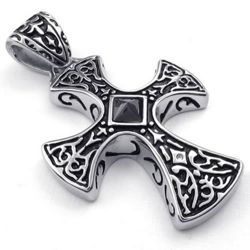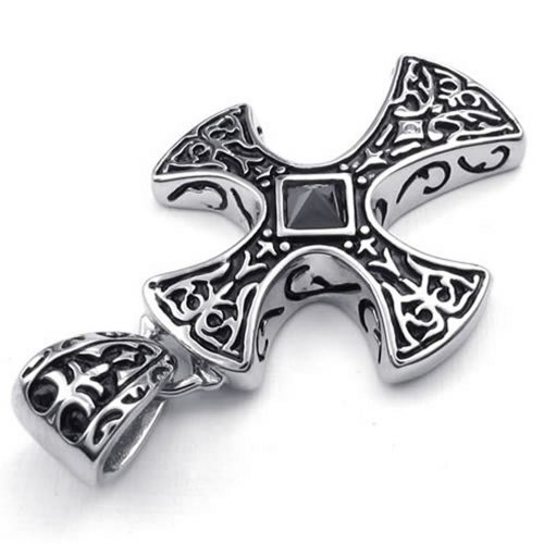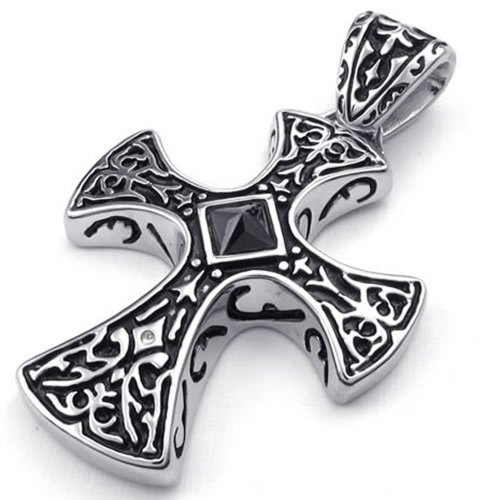 -. Title : KONOV Stainless Steel Mens Cross CZ Pendant Necklace, Black Silver, 24 inch Chain