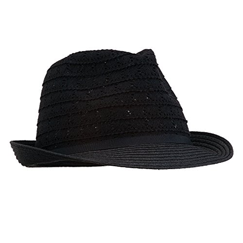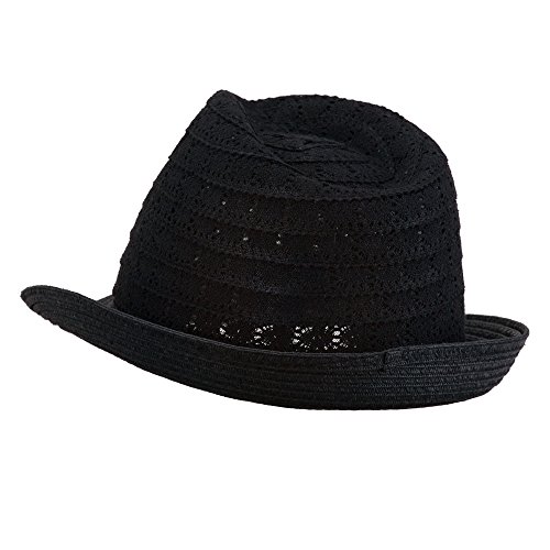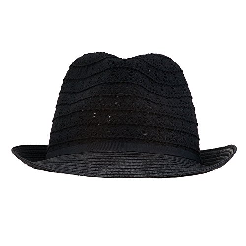 -. Binding : Apparel -. Brand : SS/Hat -. Department : womens -. Feature : Made of 50% paper straw and 50% cotton. / One size fits most ladies, fitting up to XL. / Fitted with an inner hatband. / Adult/Women. / Crown measures 4 inches deep. -. ProductGroup : Apparel -. ProductTypeName : HAT -. Title : Women's Cotton Paper Braid Fedora - Black