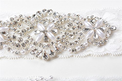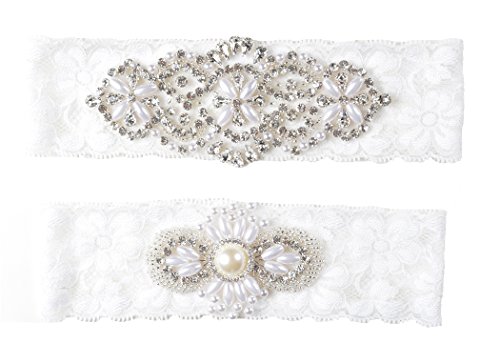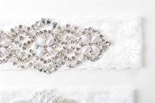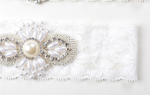 Wishprom Rhinestones Pearl Lace Wedding Bridal Garter Belt Set (Ivory)