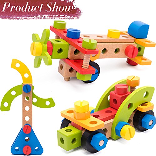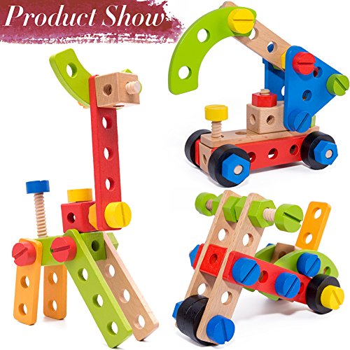 Curiosity, Play, Living in the Moment, Abandoning Worries, Imagination, Creativity, Pure Joy. 100% MONEY BACK GUARATEE In terms of any problem of the toys. You can contact our customer-service staff at any time. We will be the first time to satisfy you. The standardized fittings can be employed universally. These toys can easily assembly and can be combined, to encourage your youngster's imagination, improve ability of innovation and develop children's problem-analysis ability, problem-solving ability and creative ability. With 6 colors and 12 shapes, has such appeal to young children. 21 wood screws, 21 nuts, 12 boards with 3 sizes, 4 tires, wood wrench screwdriver and other parts amount to 78 pieces. All Cossy toys are rigorously and Independently Third-Party Lab Tested. Cossy toys are strictly Amazon standards, and passed the ASTM F963 EN71 test, 100% safe for children. Packed in a nice box for gifting. Instructions inside. Toys for 3 years boys! Good 4 years old boy gifts! 0 |