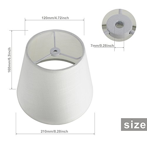 Lampshade Dimension and Material: 6.3” vertical height, 4.7”top diameter, 8.3” bottom diameter, 0.25” screw thread diameter. This Lampshade has a metal framework and double layered linen fabric.(Please note the size before order)