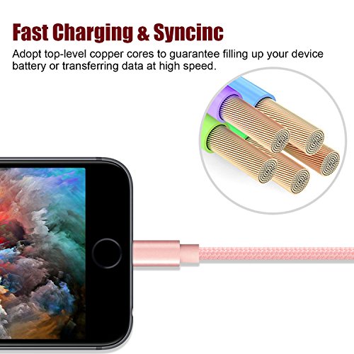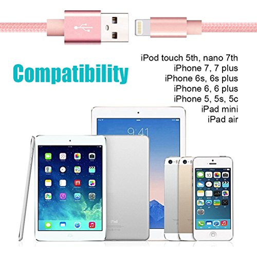 ? Enough Length You could get 3pack 10ft lightning cable, which enables you to charge your phone at ease, not restricted by the length of cable. Meet your demand that you need more than one cables in home, in office, in car and in travel.Enough Length ? Fast Charge Sync? High-quality copper wire maximizes signal quality and increases durability. ? Sync and Charge at fast speeds on your lightning devices. ? Our technology teams make thousands of tests to ensure 100% safety for. ? ? Nylon braided? Using High-Quality Nylon Braided jacket and Core Material, Precise interface Design. ? Durable nylon fiber cloth for protection, strength and flexibility ensuring long-lasting performance.Holds over 5000 bends in lab tests which is 10 times longer than original device cables.? ? Compatible with iPhone 7 / iPhone 7 Plus iPhone 6s plus / 6s / 6 plus / 6 iPhone 5s / 5c / 5 / SE iPad Air / Air 2 iPad Pro / iPad mini / mini 2 / mini 3 / mini 4 iPod nano 7th gen / iPod touch 5th gen ? Reliable Warranty Provided? The iPhone charger cable with super quality, we provide 12-month Warranty. 24/7 friendly customer service will solve all your problem.?