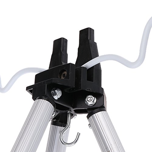 -. Feature : Mini fishing rod tripod, supports up to 5 rods at a time. / Suitable for telescopic fishing rods, hand held rod. / Folding size is 47cm/18.5inch, easy to carry. / Put something heavy or put fishing bucket full of water hang on the center hook to make it more steady. / Perfect for carp, feeder, barbel or beach fishing.