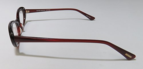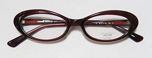 Brand: Oliver Peoples Style: Dexi Gender: womens Frame Type: full-rim Frame Material: plastic Case: eleganzo Size: 50-17-140 Color code: si Frame Color: burgundy Lens Color: demo lenses Lens Height: 27 mm The frame is fully rx-able and can be fitted with prescription and/or tinted lenses at most optical stores. Please note that factory demo lenses have a logo stamped on them in ink. This frame provides comfortable fit and flatters a variety of face shapes. These eyeglasses are crafted from high quality, durable premium acetate plastic. Please keep in mind that original case is not included with this frame. However, we will include an Eleganzo hard case at no extra charge to keep your eyeglasses protected. The glasses are made in Japan. These eyeglasses retail for $420.00 at upscale stores that carry designer frames. Save your money and get them here! The pictures cannot fully reflect the beauty of this piece of designer eyewear. These eyeglasses look even more elegant in real life. 0 |