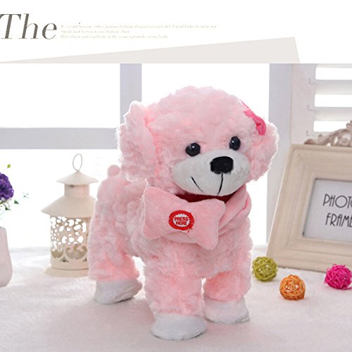Description: When you turn on the electronic dog, it will play music and walk, sing and dance. A perfect gift for children and very easy to operate through the string. How to play: 1. The switch is on the In the abdomen of the dog, 2. Put the batteries into the box (make sure the correct position of the battries) 3. Open the switch and press the bone buton, the dog will be walking forward, twisting the body and singing. 4. The feet will walk following the music, it's very cute. 5. The dog dances happily, you baby will love it. 6. Press the switch on the bone again, it will stop at once. Size: Length: 28cm Height: 22cm Width: 11cm This dog toy needs 3 AA batteries. (Package not include batteries)Feature