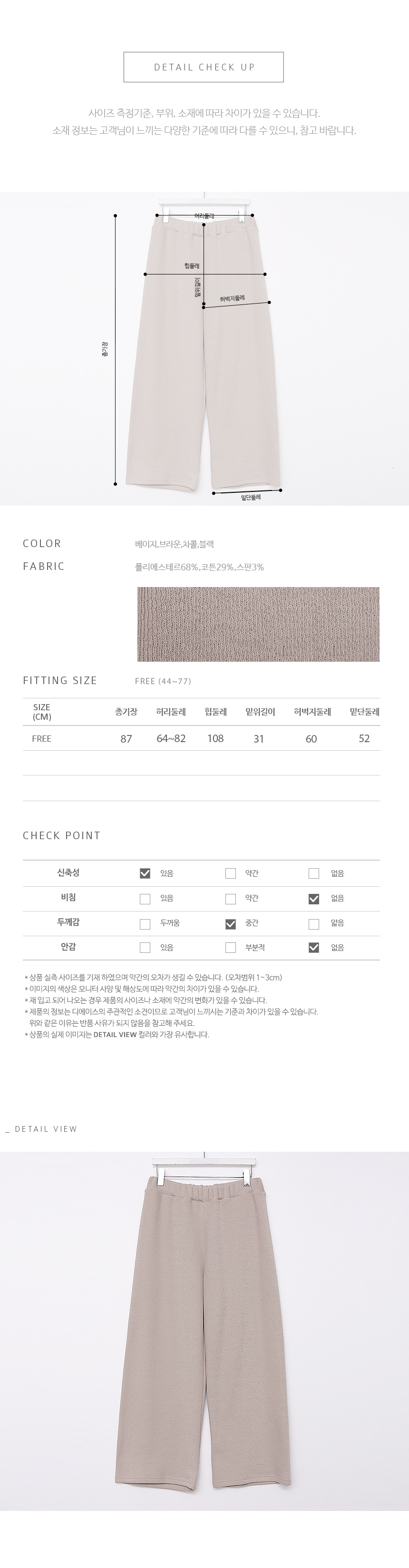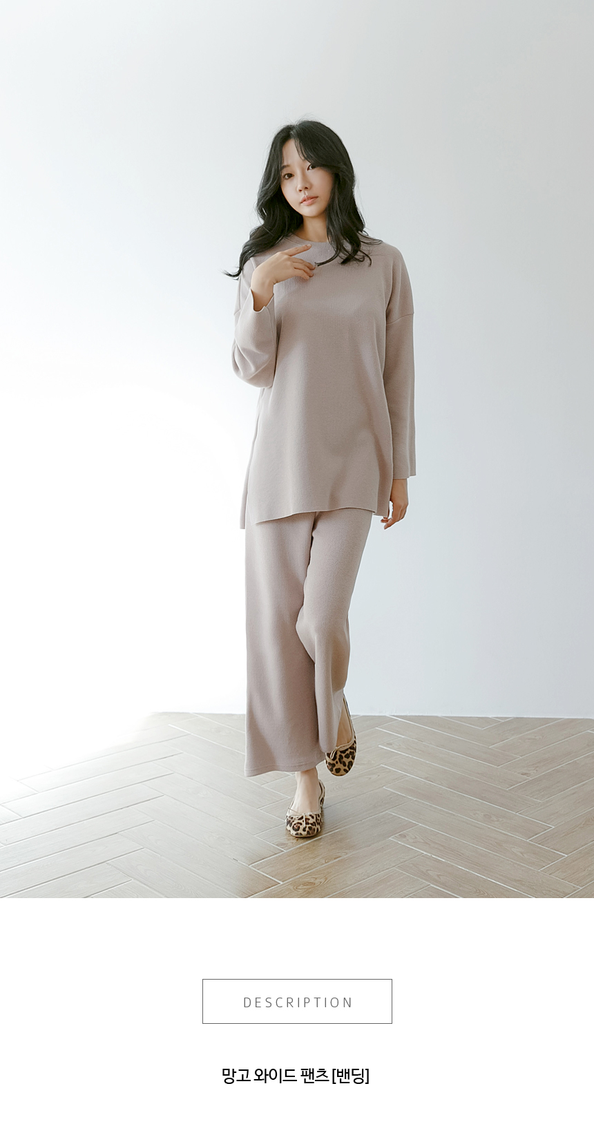 전체 밴딩의 와이드 폭 일자 팬츠예요.