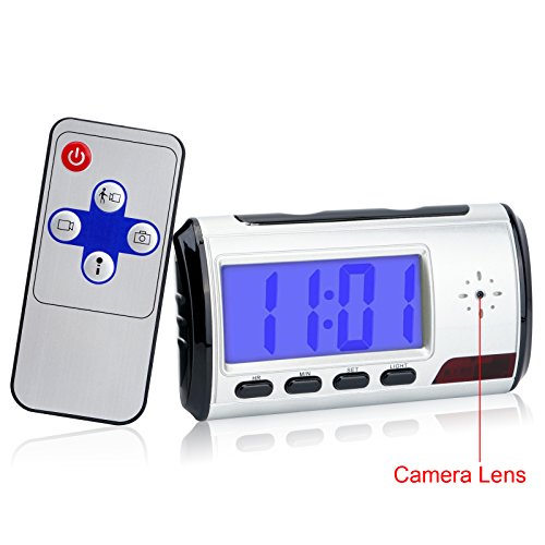 -. Feature : 【Spy Camera Clock】: the portable alarm clock spy camera is the perfect portable solution when you're looking for a nanny camera, home security camera or any other type of short-term surveillance. Remote control; snapshot function; real digital alarm clock function. / 【Hidden Camera Motion Activated】: the 7.5 hours motion detection standby ensures that you don't waste valuable recording memory, or miss some important surveillance events. / 【Hidden Video Camera】: support rechargeable li-ion battery built-in; battery capacity: 2200mAh; charge voltage: DC 5V; operating battery life time: 7.5hrs continuous video recording. / 【8GB Micro SD Card】: 8GB Micro SD card included; support 32GB SD card in max(not included); we sest you to format your sd card before using. / 【Mini DV Camcorder】: video resolution: 640x480; photo resolution: 1600x1200; photo format: JPG; video format: AVI; video frame rate: 25/30fps.