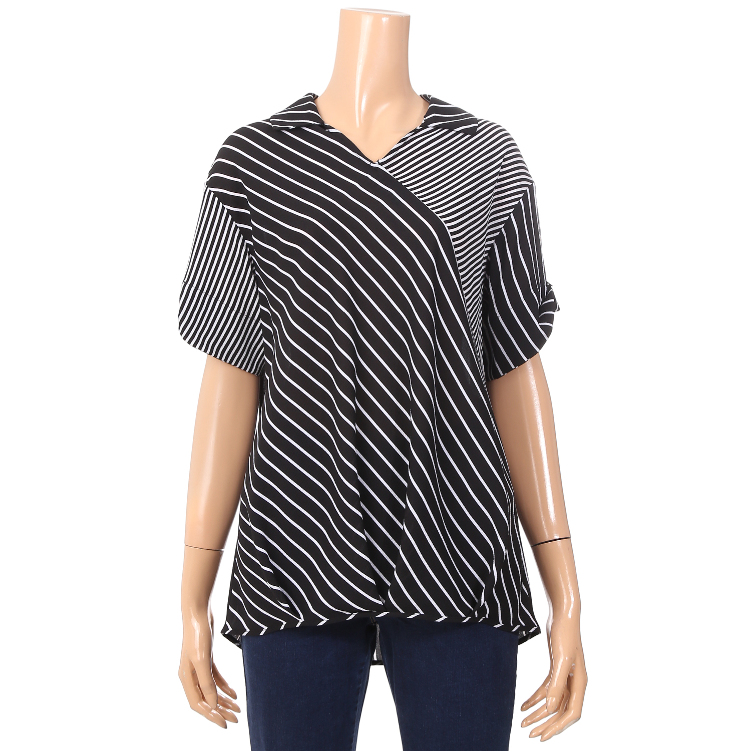 카라 스트라이프 쉬폰 블라우스입니다