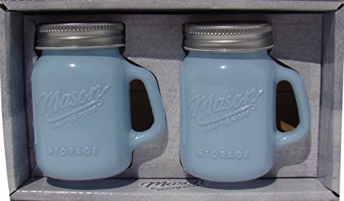 Mason Jar Salt and Pepper Shaker - Milk Glass Blue
