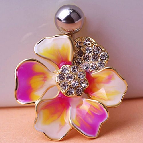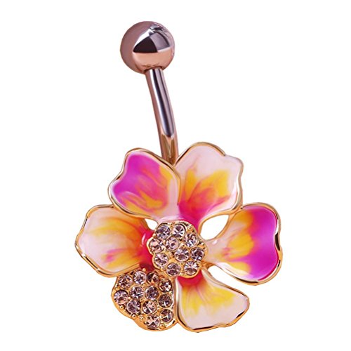 1 * Lotus Shaped Rhinstone Decorated Women Navel Belly Ring Body Piercing Stud (Pink)