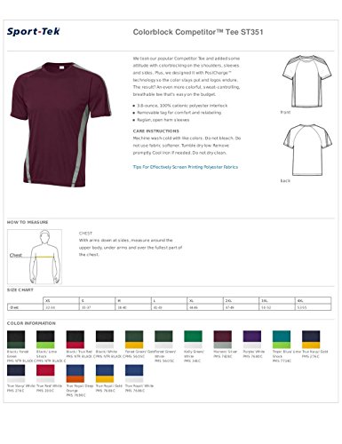 Studio : Sport-Tek Publisher : Sport-Tek Product Description Lightweight, breathable, moisture-wicking, economical and colorful with colorblock panels on shoulders and sides, as well as PosiCharge technology to ensure the color and logos endure, 3.8-ounce, 100% cationic polyester interlock, Removable tag for comfort and relabeling, Raglan sleeves, Adult Sizes: XS-4XL. 0