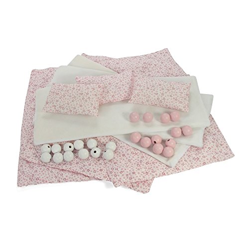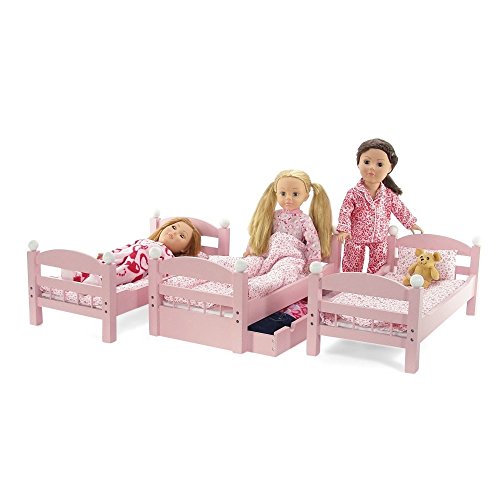 Includes 3 mattresses, blankets and pillows in adorable fabric.