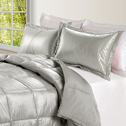 PUFF High Loft Down Indoor/Outdoor Water Resistant Comforter with Extra Strong Nylon Cover, King, Pewter