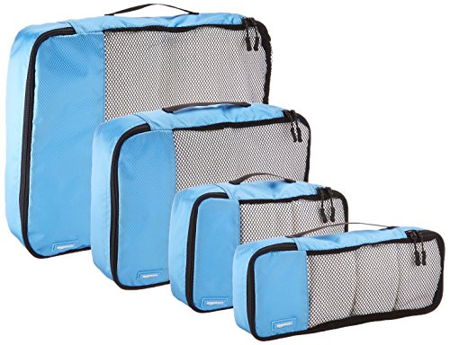 Set includes 1 large (17.5 x 12.75 x 3.25 inches), medium (13.75 x 9.75 x 3 inches), small (11 x 6.75 x 3 inches), and slim (14 x 5 x 2.8 inches) AmazonBasics packing cube