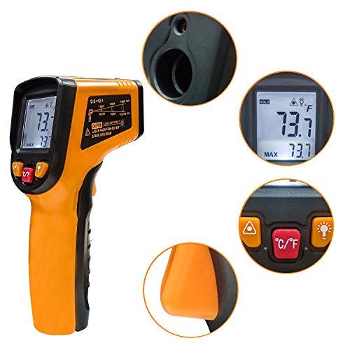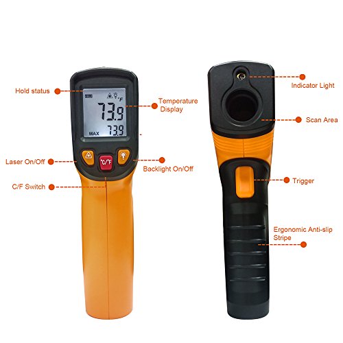 - Temperature Range: -58F to 1112F(-50C to 600C), Accuracy: ±1.5%. Built in Laser gives you the precision to hone in on the exact space you want to measure.