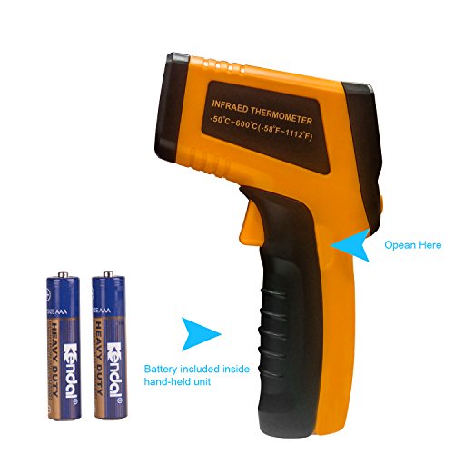 - ADJUSTABLE EMMISIVITY: You can adjust the emmisivity for testing temperature on different material, please refer to the details on user manual on the detail page. Powered by 2 x 1.5V AAA batteries(Included).