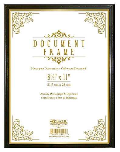 - BLACK DOCUMENT FRAME W/ GOLD BORDER (8.5” X 11”). Show off certificates and awards with this sleek frame. The sturdy construction, and classic design make it perfect to hang or display on your desk.