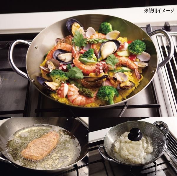 両手フライパンとして、焼き物などにも使用できます。